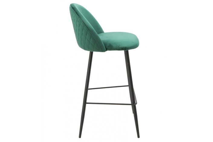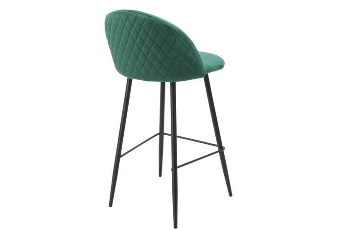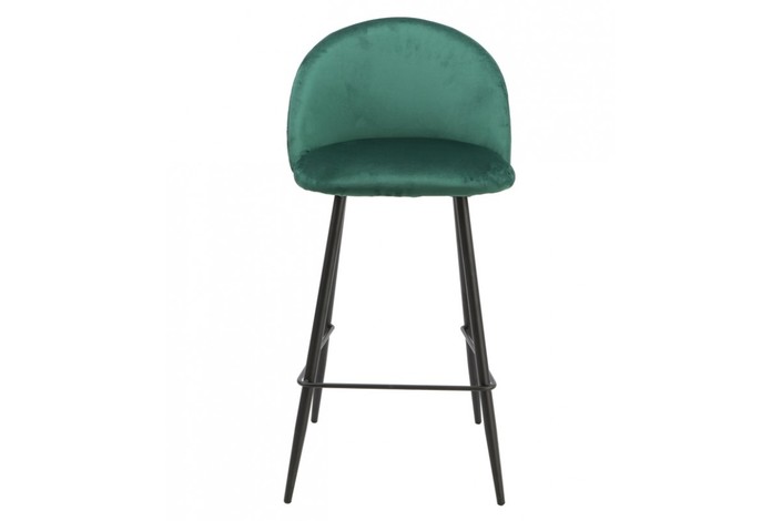 Taburete de diseño, armazón metálico con acabado epoxi negro, asiento tapizado en terciopelo de color verde. Uso en interiores. Otros colores disponibles. Silla a juego