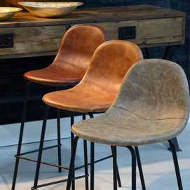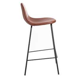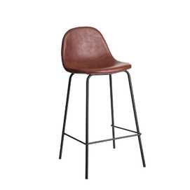 Material: Simil piel - hierro Altura del asiento: 65cm. Altura de las patas: 63cm. Altura del respaldo: 27cm. Relleno: 10mm esponja densidad 25kg/m2 - 12mm madera curvada -16x1.5mm tubo de hierro. Precisa montaje. No apilable. Cumple normativa EN16139:2013