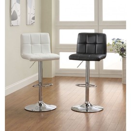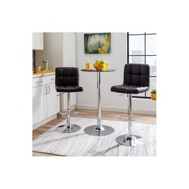 Taburete de diseño, regulable, cromado, similpiel negra.