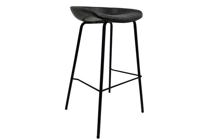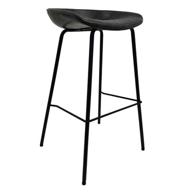 -Asiento tapizado en similpiel de color negro, interior del asiento del taburete con costuras de rombos