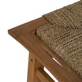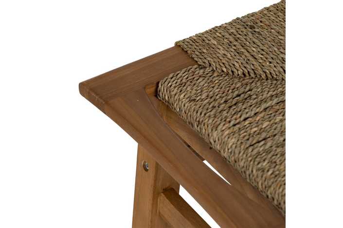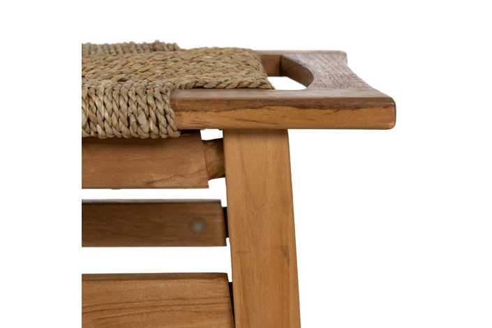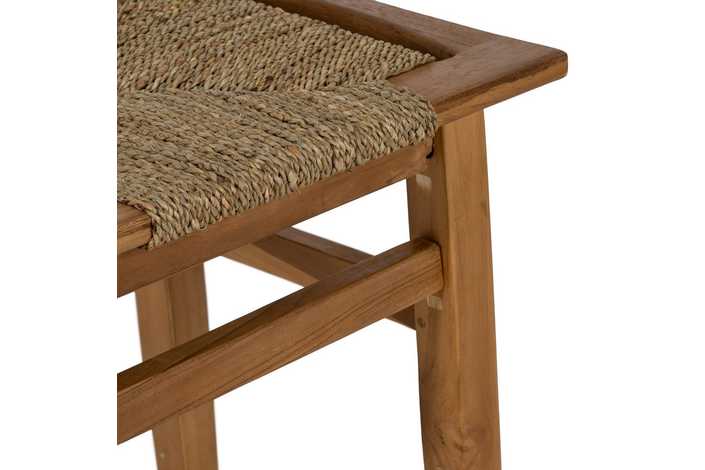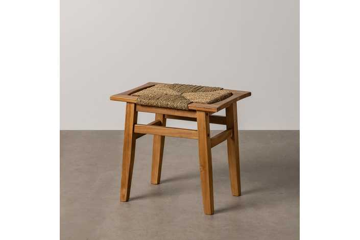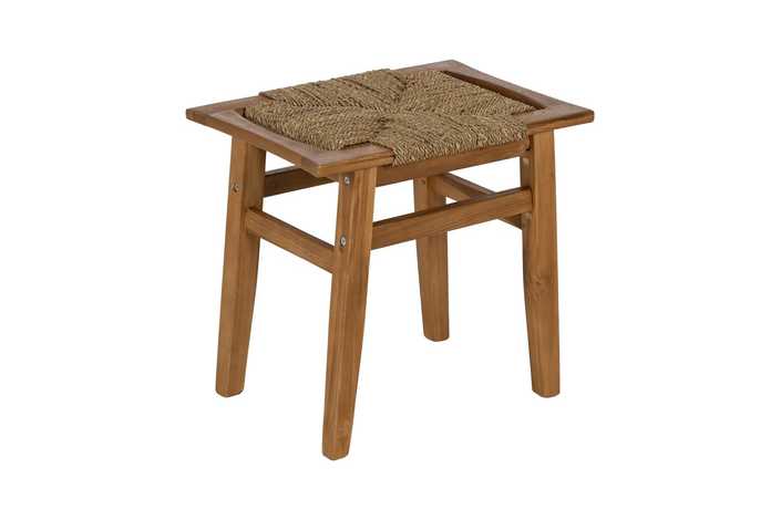 TABURETE DE TEKA CON ASIENTO DE MENDONG. Requiere montaje. Comple con la normativa europea UNE-EN 12520:2015. Altura de las patas:43cm.