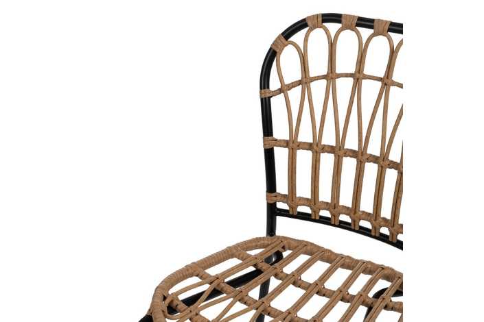 Material: polietileno, acero. Altura asiento: 76,5m. Ancho asiento: 42cm. Profundidad asiento: 45cm. Altura respaldo: 43cm. Apilable. Cumple la normativa EN581 (uso exterior).