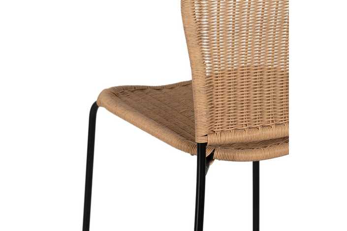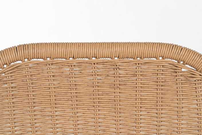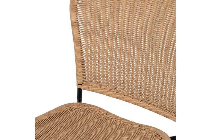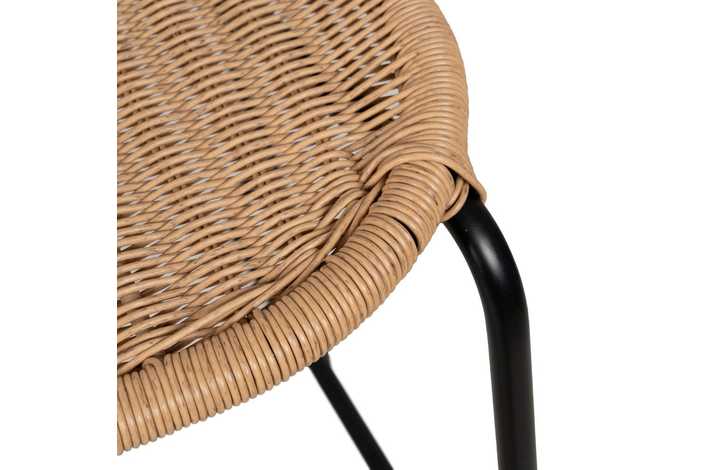 Material: polietileno, acero. Altura asiento: 74cm. Ancho asiento: 43cm. Profundidad asiento: 44cm. Altura respaldo: 45cm. Distancia reposapies hasta asiento: 43cm. Cumple la normativa EN581 (uso exterior).