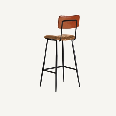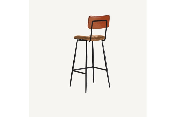 Taburete neguac, en color marrón, de estilo vintage. Fabricado en hierro, combinado con piel.