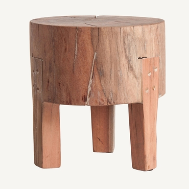 Estos pequeños taburetes artesanales están compuestos por un asiento redondo natural de tronco de madera y cuatro patas de madera. El hecho de que esta sea una madera muy duradera y resistente que hace que estos artículos sean excelentes para su uso frecuente. Además, cada uno de ellos es único debido a las grietas y nudos que posee la madera.