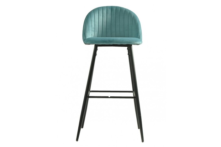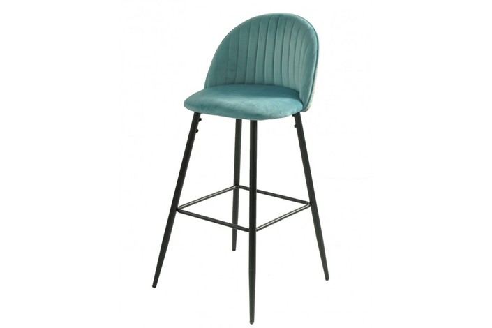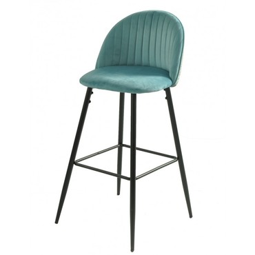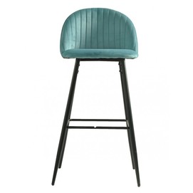 Taburete de diseño, armazón metálico con acabado epoxi negro, asiento y respaldo tapizados en terciopelo azul, trasera en tejido decorado palm. Otros colores disponibles. Silla a juego