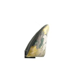 -Asiento y respaldo tapizados en terciopelo de color azul, trasera del respaldo en tejido decorado palm.