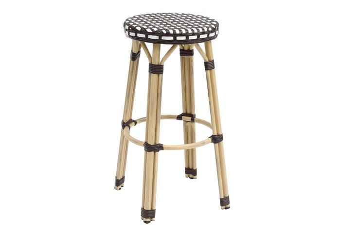 Taburete de diseño para exterior, armazón de aluminio y ratán blanco y marrón - tal cual imagen -. Sillón y Silla a juego
