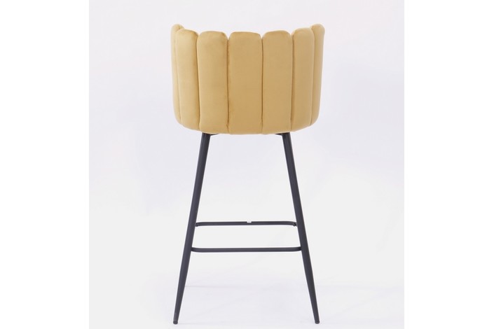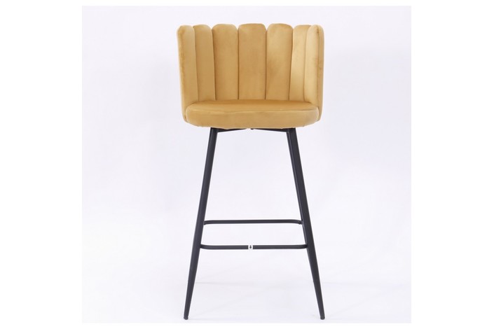 Taburete de diseño, armazón metálico con acabado epoxi negro, asiento tapizado en terciopelo de color amarillo. Uso en interiores. Otros colores disponibles. Silla a juego