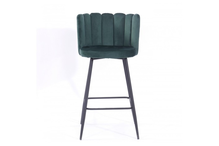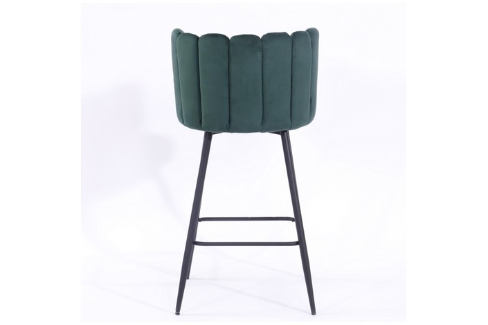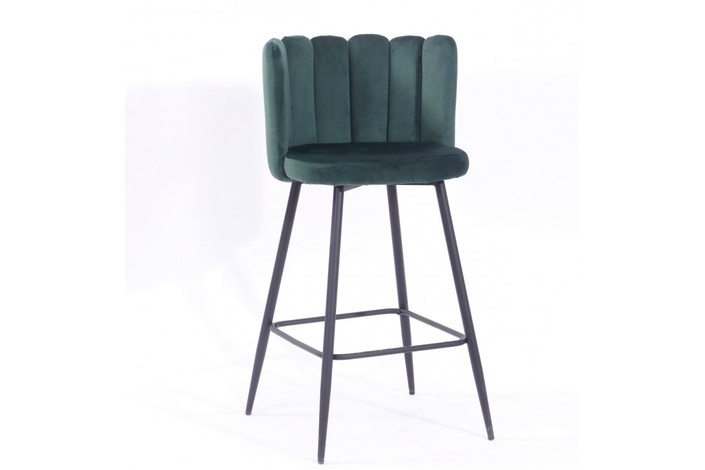 Taburete de diseño, armazón metálico con acabado epoxi negro, asiento tapizado en terciopelo de color verde. Uso en interiores. Otros colores disponibles. Silla a juego
