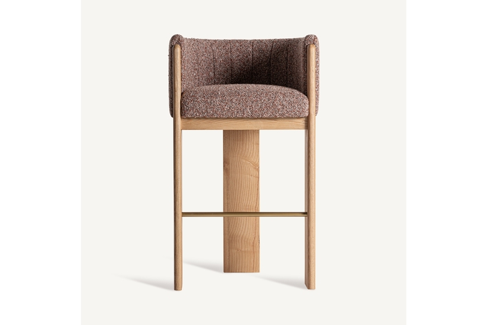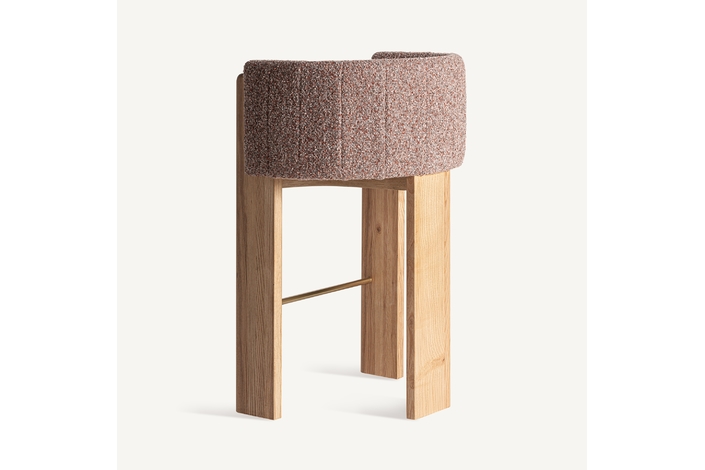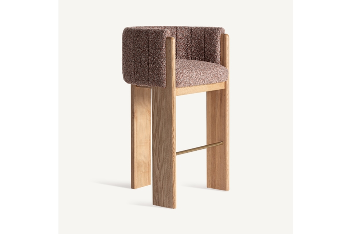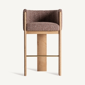 Taburete sernier, en color marrón, de estilo contemporáneo. Fabricado en poliéster, combinado con madera roble y espuma.
