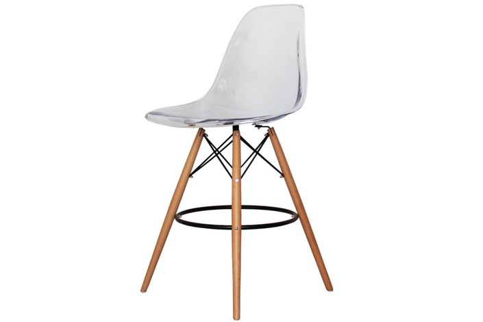 Taburete de diseño, madera, carcasa de PET con acabado transparente. Sillas a juego. -IMPORTANTE: Se entrega con la base montada.