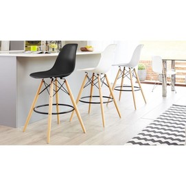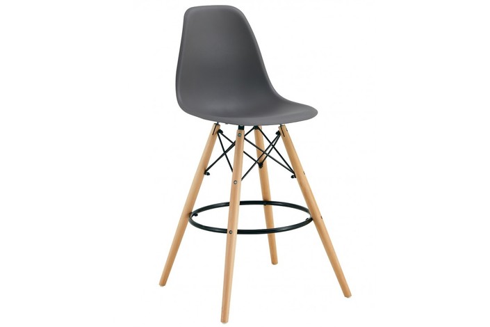 Taburete de diseño, madera, carcasa de polipropileno de color gris oscuro. Sillas y sillones a juego.