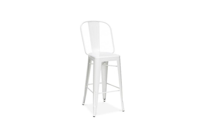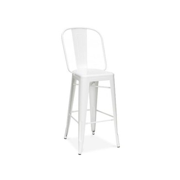 Taburete de diseño, estructura de acero, pintado en blanco. Uso en interiores o exteriores. Otros colores disponibles. Mesa, silla y sillón a juego