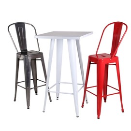 Taburete de diseño, estructura de acero, pintado en rojo. Uso en interiores o exteriores. Otros colores disponibles. Mesa, silla y sillón a juego