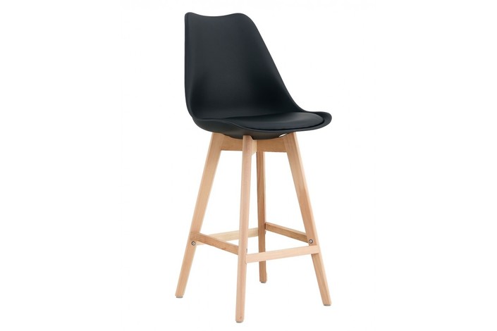 Taburete de diseño, madera, carcasa negra, cojín negro. Sillas y sillones a juego. Altura asiento 72 cms