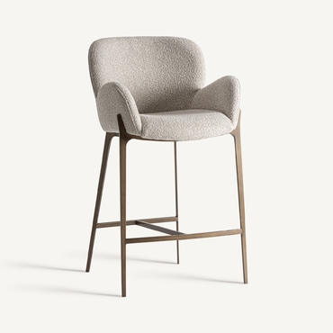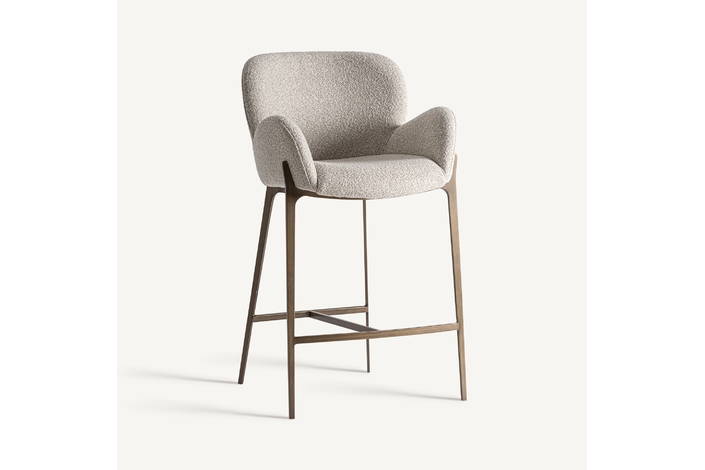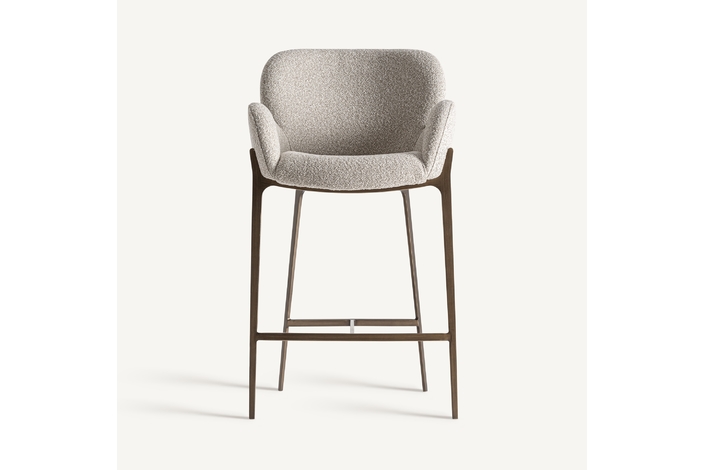 Taburete Uelzen de estilo contemporáneo, fabricado en algodón en color gris, combinado con metal en color negro.