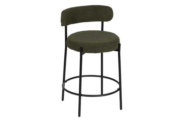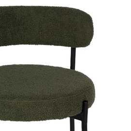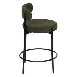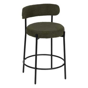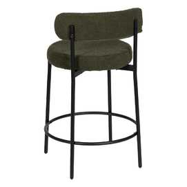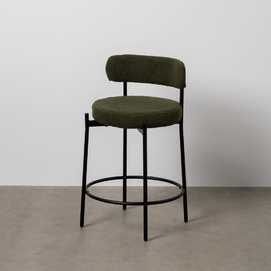 Material: hierro - tejido - madera conglomerada - foam. Tejido: 100% poliéster Medida asiento: 43 cm. de diámetro - 8 cm. grueso. Altura respaldo: 22cm. Altura asiento: 62cm. Altura patas: 55cm. Precisa montaje. Cumple normativa: EN16139:2013 No apilable.
