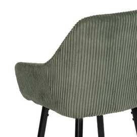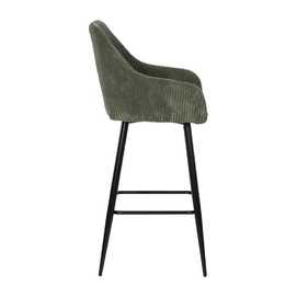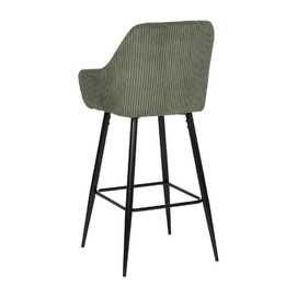 Tejido: Políester ( pana) Relleno:foam Densidad del relleno: 28kg/m3. Material de las patas: Hierro Altura del asiento:75cm Altura de las patas:70cm. Altura del respaldo: 37 cm. Peso máximo soportado:140kgs. No apilable. No necesita montaje. Cumple normativa EN16139:2013 (Catering).