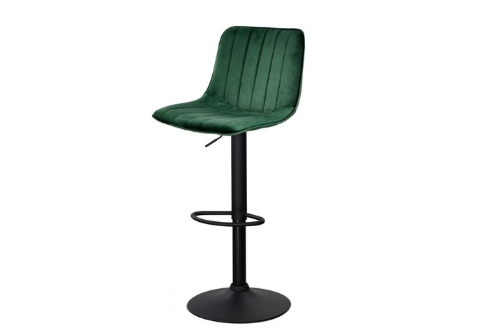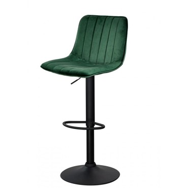 Taburete YUCCA, regulable, metal negro, tapizado velvet verde