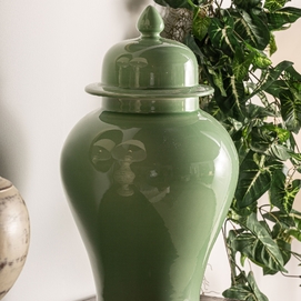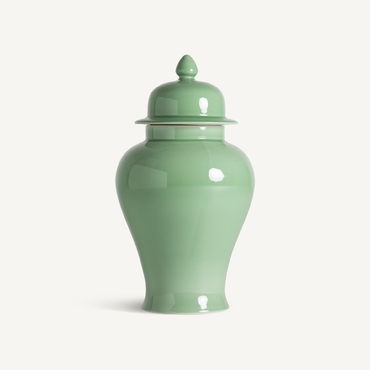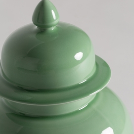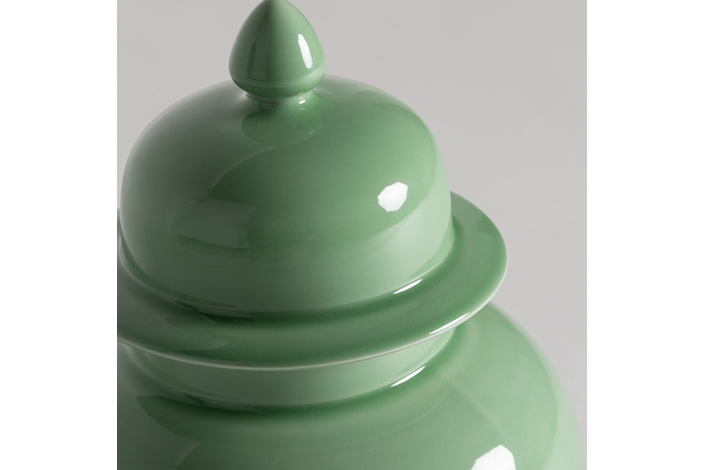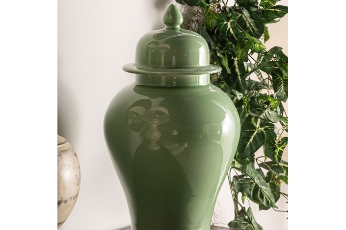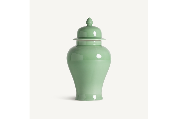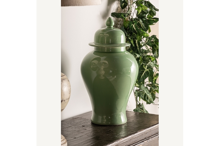 Tibor ivok, en color verde claro, de estilo provenzal. Fabricado en cerámica.