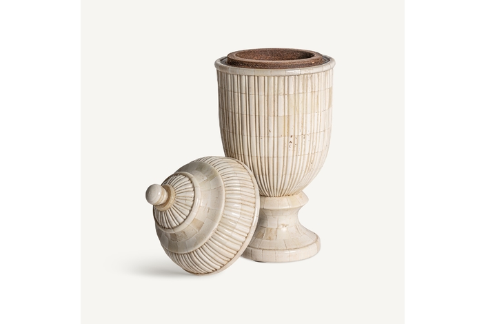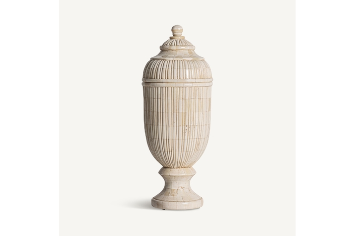 Tibor jarek, en color marfil, de estilo colonial. Fabricado en resina.