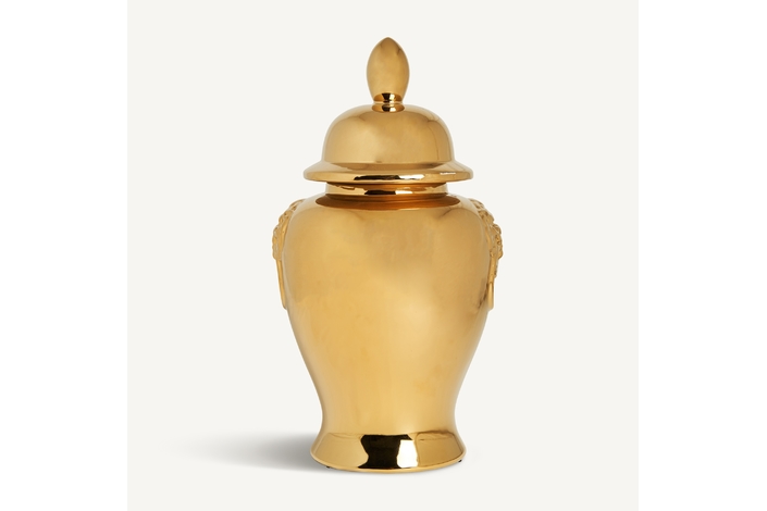Tibor lua, en color oro, de estilo art deco. Fabricado en cerámica.