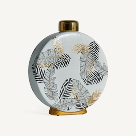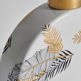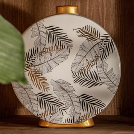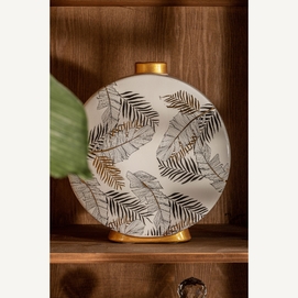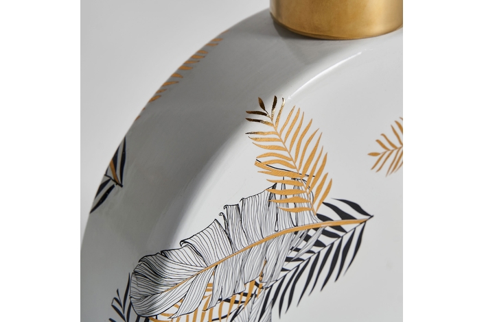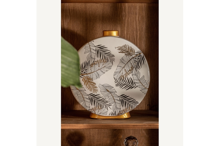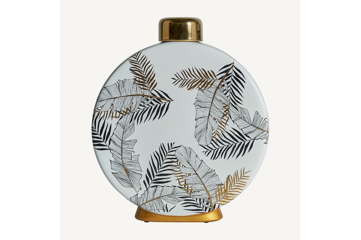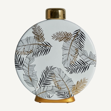 Tibor uxue, de estilo provenzal. Fabricado en cerámica, en color blanco, en color oro.