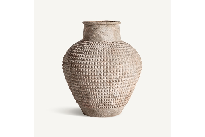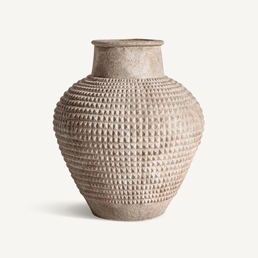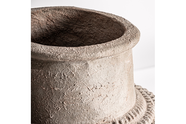 Tinaja de estilo clásico, fabricado en cemento en color beige.