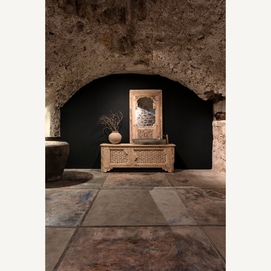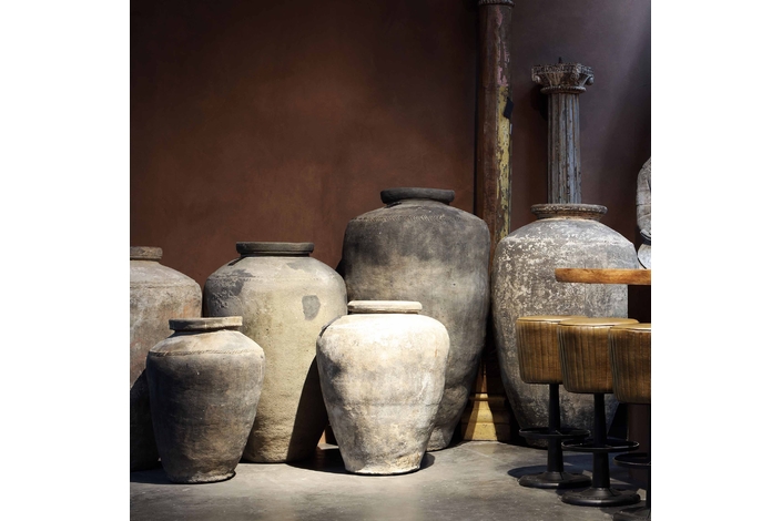 Tinaja colmberg, en color marrón envejecido, de estilo étnico. Fabricado en terracota.