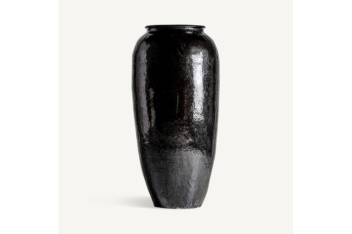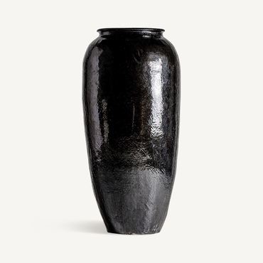 Tinaja galactea, en color negro, de estilo oriental. Fabricado en cerámica.