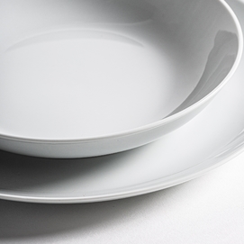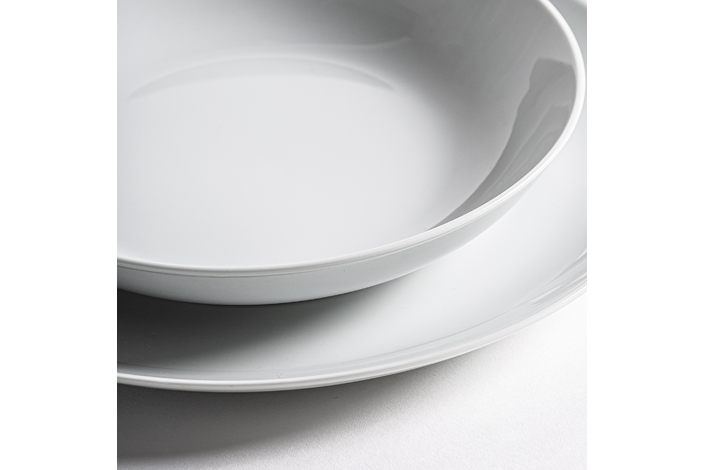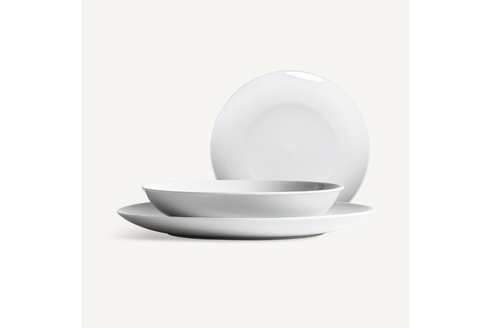 Vajilla j/18 martina, en color blanco, de estilo art deco. Fabricado en porcelana.