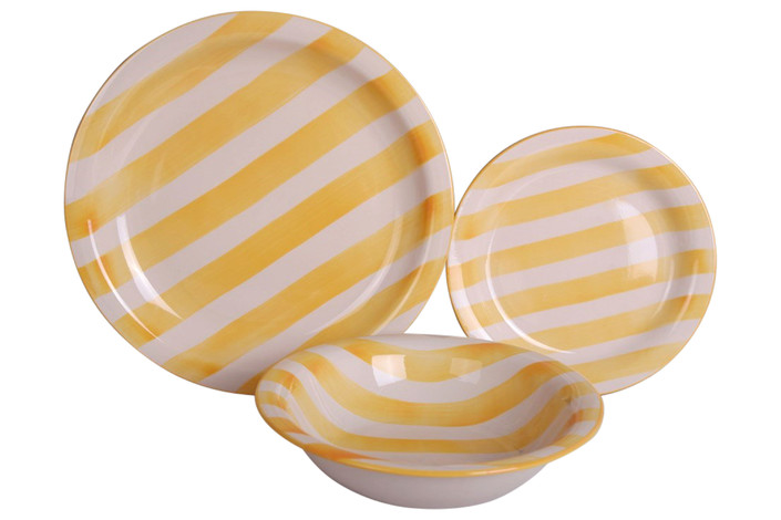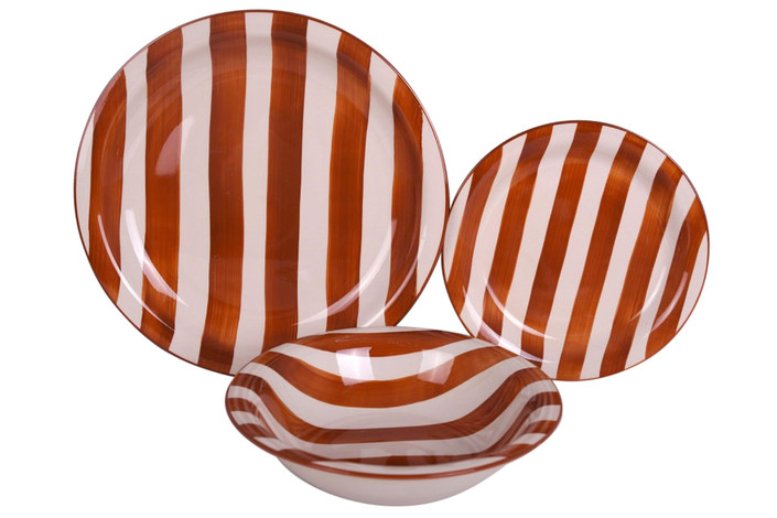 VAJILLA SET 18 GRES 27,5X27,5X2,8 RAYAS MULTICOLOR