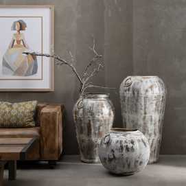VASIJA BLANCO ROZADO METAL DECORACIÓN 55 X 55 X 100 CM
