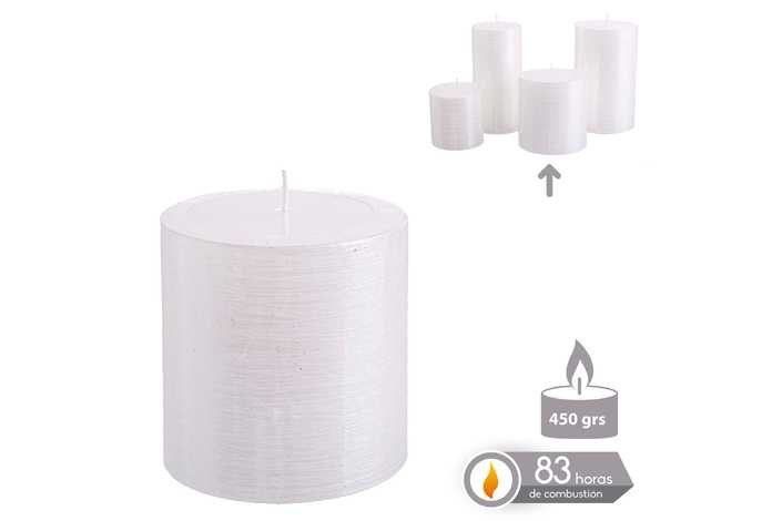 VELA CILÍNDRICA BLANCO NACARADO NAVIDAD 8,70 X 9 CM