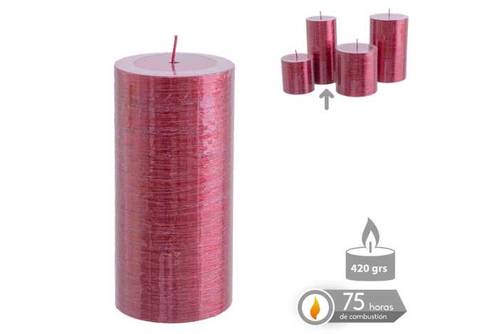 VELA CILÍNDRICA ROJO METÁLICO NAVIDAD 6,80 X 14 CM