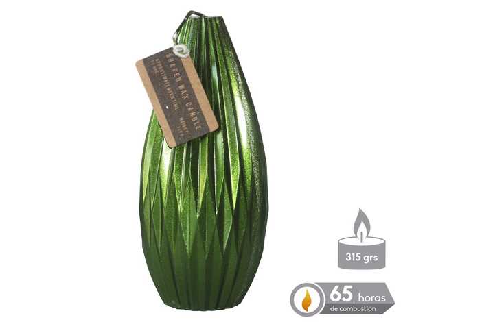 VELA LÁGRIMA VERDE METÁLICO NAVIDAD 6,70 X 15 CM