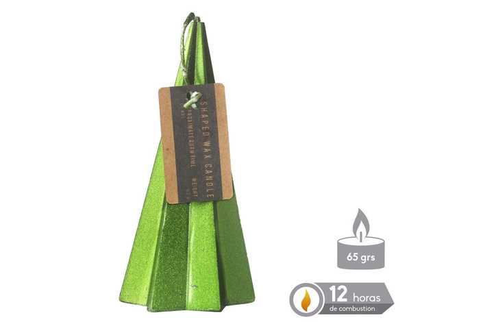 VELA PIRÁMIDE VERDE METÁLICO NAVIDAD 5,50 X 11 CM