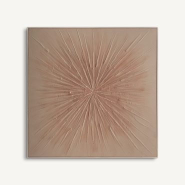 Cuadro, fabricado en lienzo en color teja, combinado con madera de pino en color marrón claro.