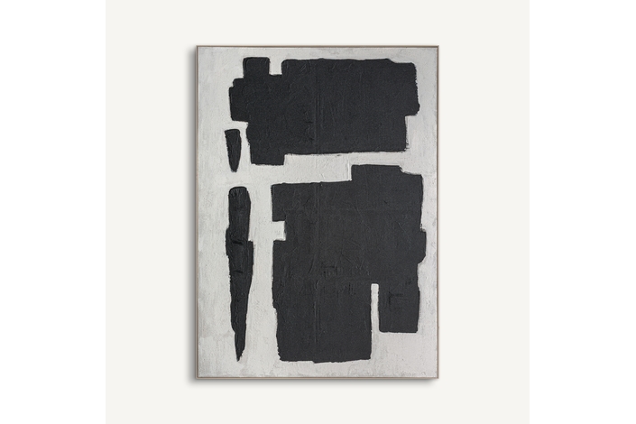 Cuadro, fabricado en lienzo en color tonos neutros, combinado con madera de pino en color marrón.