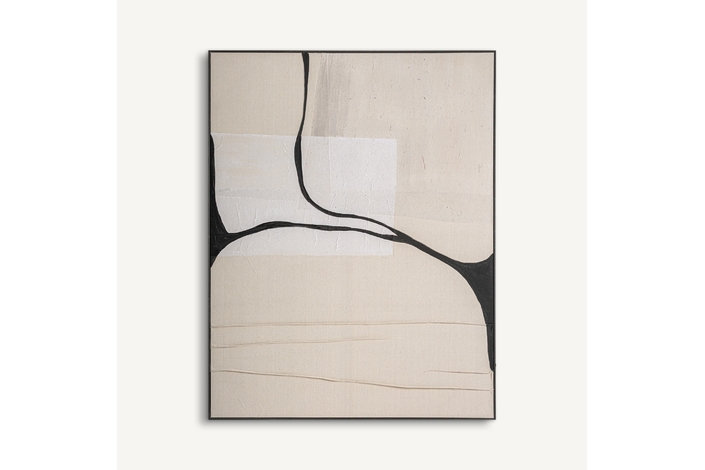 Cuadro, fabricado en lienzo en color beige, combinado con madera de pino en color negro.