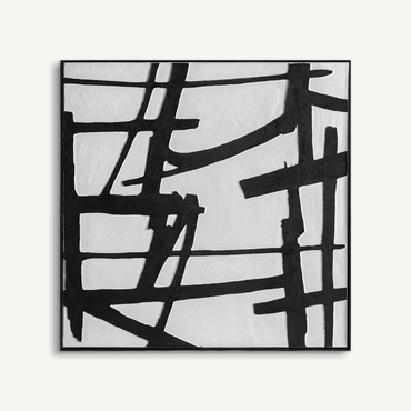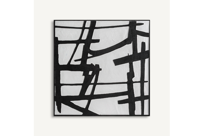Cuadro, fabricado en lienzo en color blanco, combinado con madera de pino en color negro.