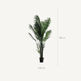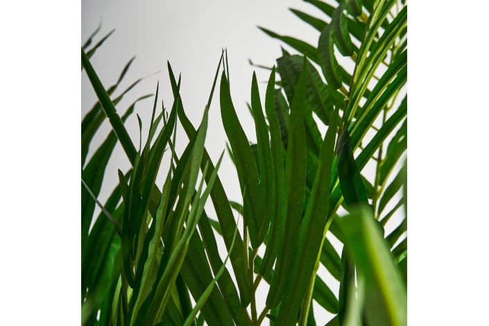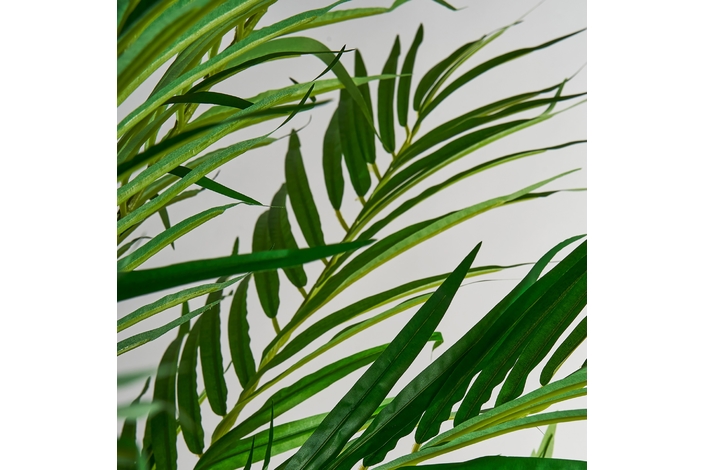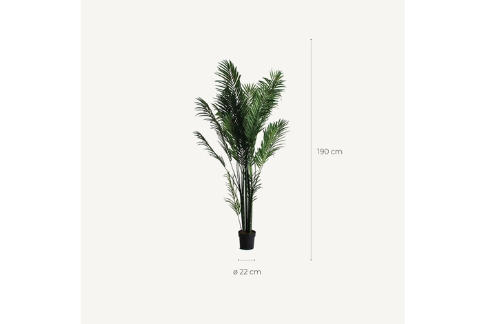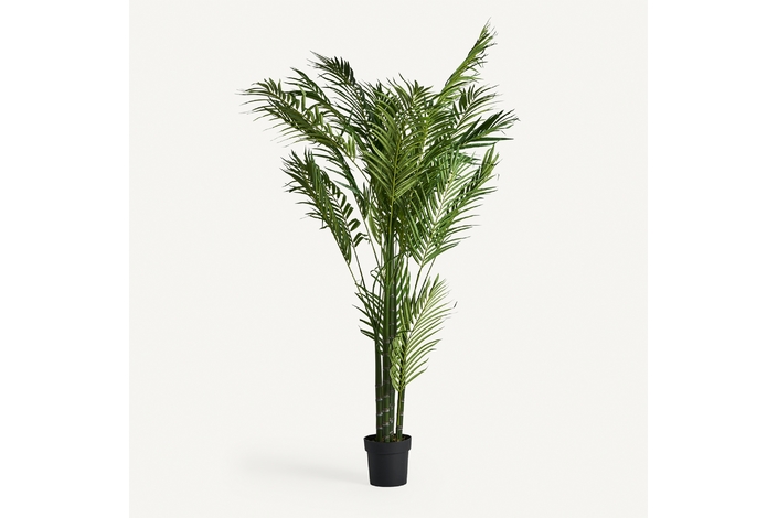 Planta palmera, en color verde, de estilo colonial. Fabricado en poliéster, combinado con plástico.
