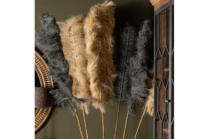 Rama decorativa j/6, en color negro/natural, de estilo étnico. Fabricado en rafia.
