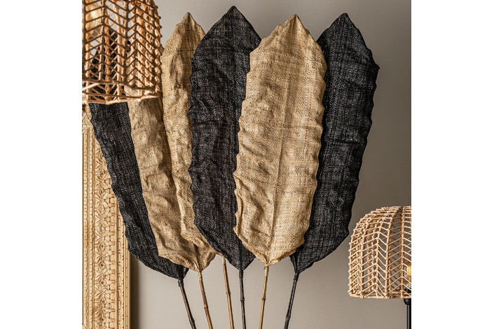 Rama decorativa j/6, en color negro/natural, de estilo étnico. Fabricado en fibra natural.