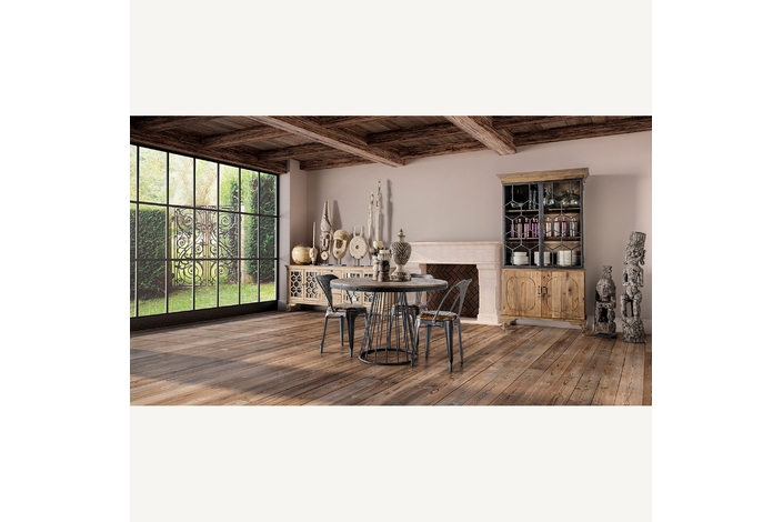 Portavela massa, en color marrón/blanco envejecido, de estilo provenzal. Fabricado en hierro, combinado con madera de abeto.