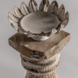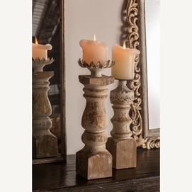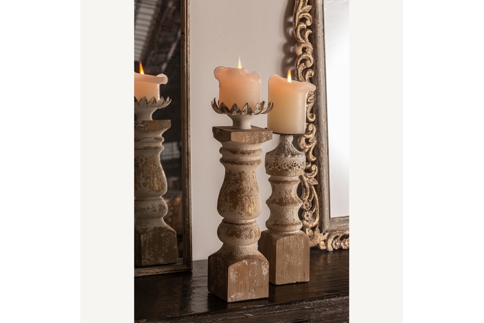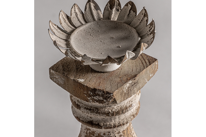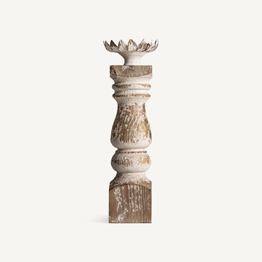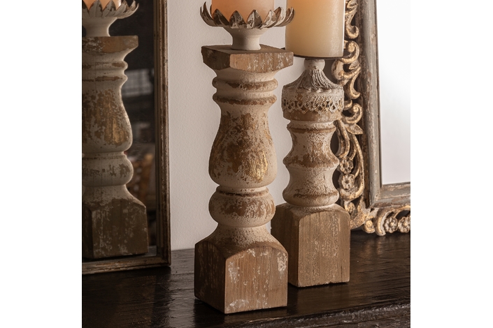 Portavela, en color crema, de estilo colonial. Fabricado en hierro, combinado con madera de abeto.