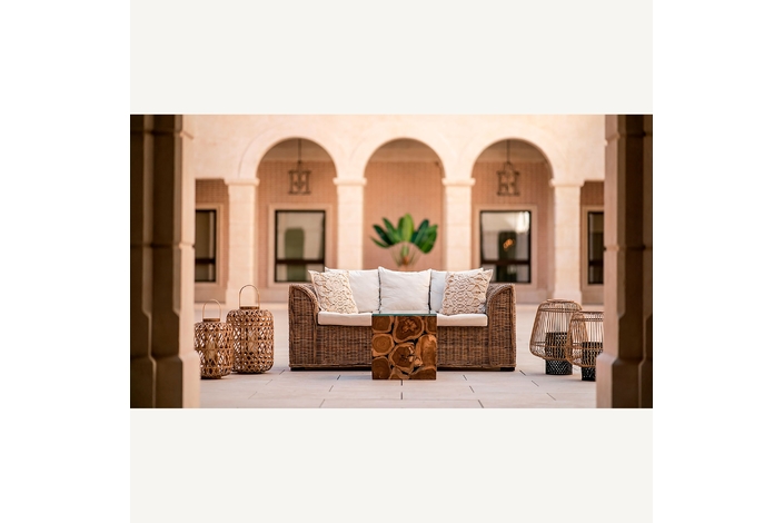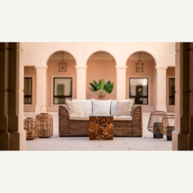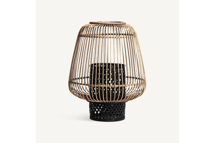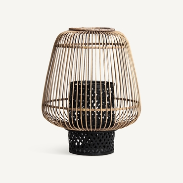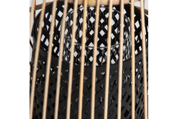 Portavela ghiare, en color negro/natural, de estilo contemporáneo. Fabricado en bambú, combinado con ratán y vidrio. Madera contrachapada.