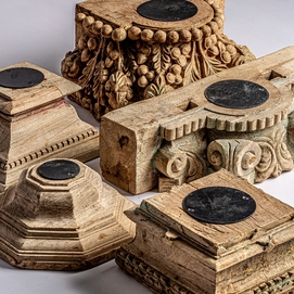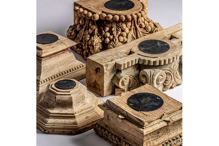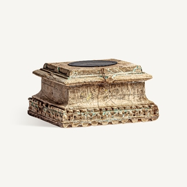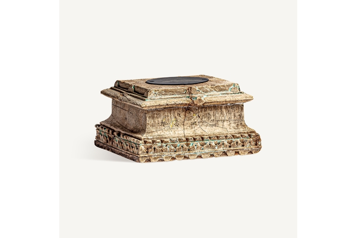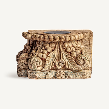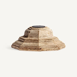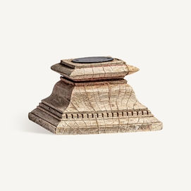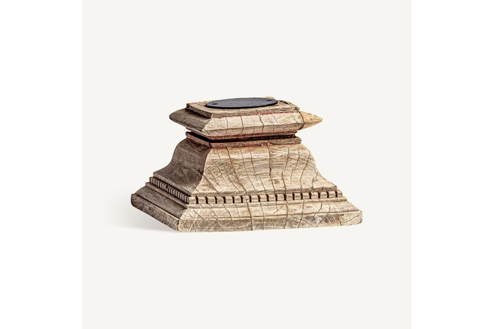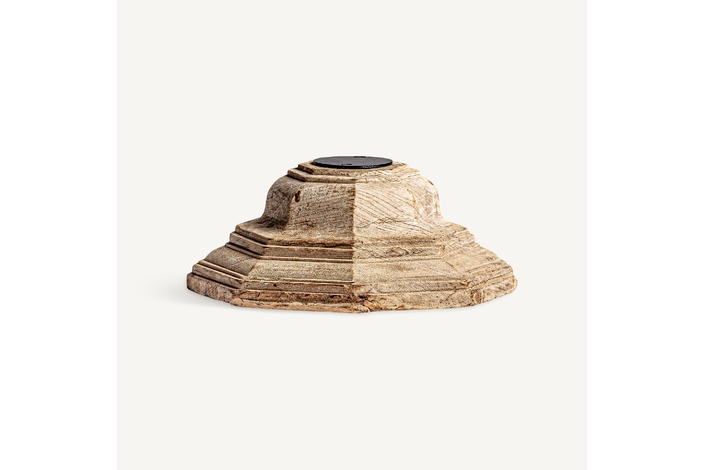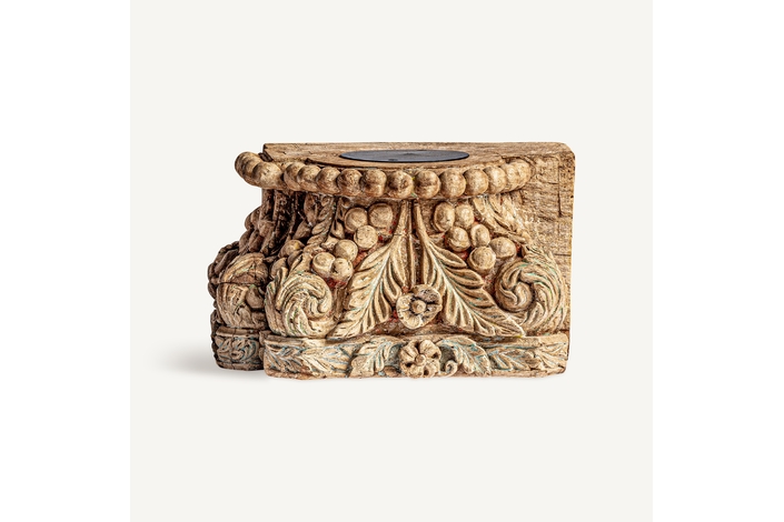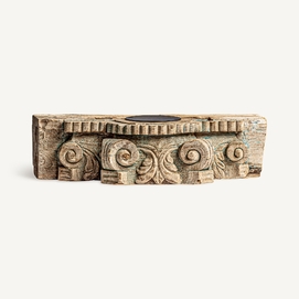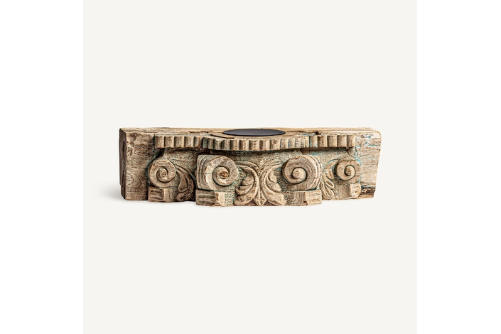 Portavela surt , en color marrón envejecido, de estilo étnico. Fabricado en madera de teka, combinado con hierro.