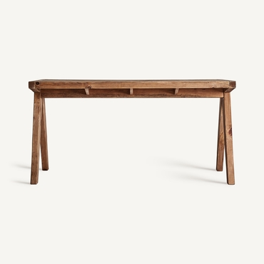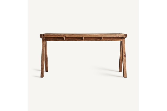 Escritorio crissey, en color marrón, de estilo contemporáneo. Fabricado en madera de pino reciclado. Producto desmontable.